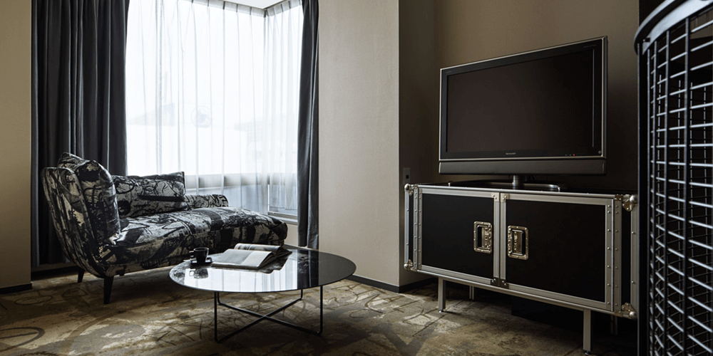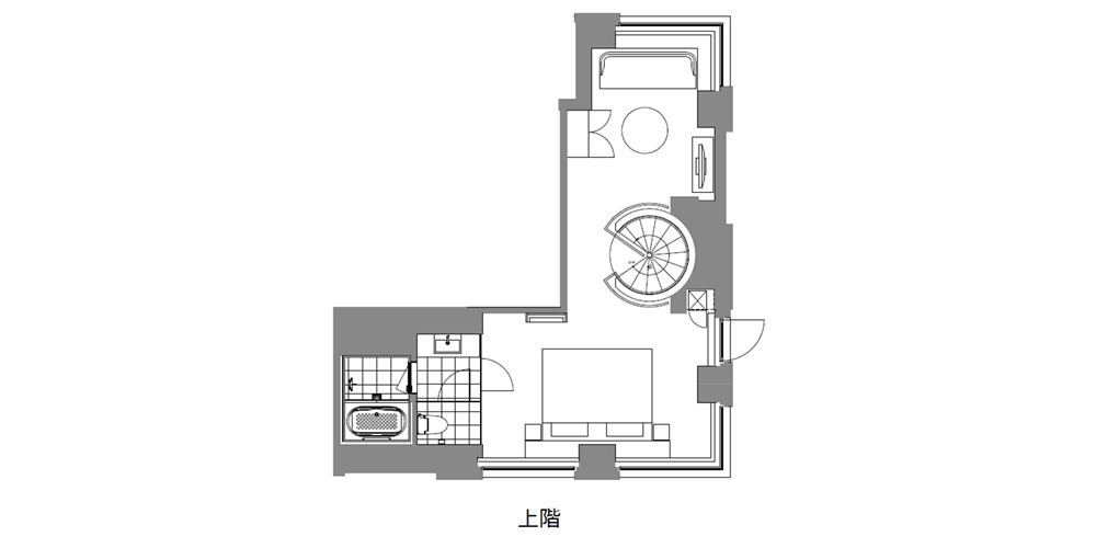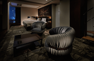 최상층의 넓은 뿔 방. 아카사카의 거리가 펼쳐지는 경치가 자랑의 스위트.
