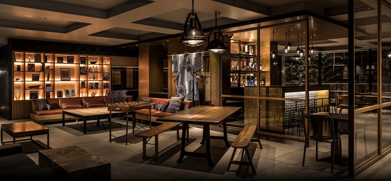 현대와 전통, 일본과 서양 같은 대극의 요소를 융합시킨 관내 디자인.