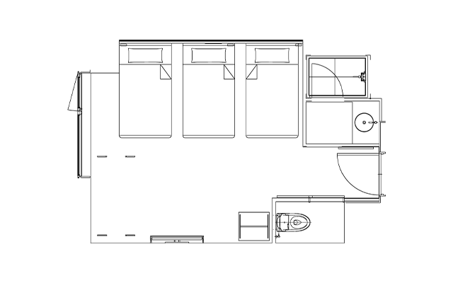 평소보다 60cm 높고 압박감을 느끼기 어려운 천장 높이 280cm의 객실.
