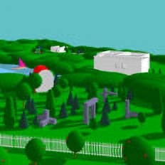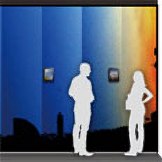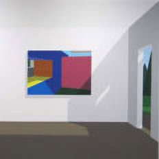 PC 상에 가상 공간을 만들어 그 안에 자신이 서서 거기에서 잘라낸 풍경을 그리고 있다.